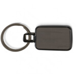 Metal rectangular key ring with a gunmetal plated finish on both sides which can be laser engraved to a natural etch. It is beautifully presented in a black gift box.